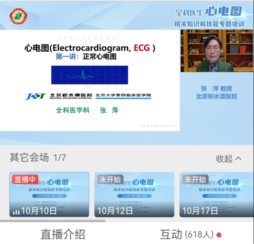 附属天坛医院全科医学科、附属安贞医院全科医学科、附属积水潭医院全科医学科、附属复兴医院全科医学科、北京医院急诊科的主任马力教授、马涵英教授、张萍教授、王杰萍主任医师和曹素艳主任医师,组成专家授课团队,共同梳理和凝练培训课程的内容体系,传授心电图相关知识和判别技能。