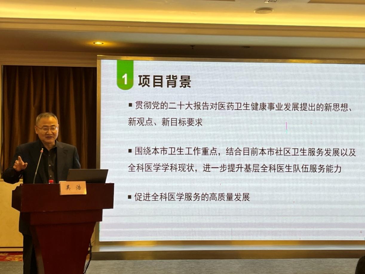 首先,王晨教授宣读了《北京市卫生健康委员会关于首都卫生发展全科医学与社区卫生科研专项 2023 年项目立项的通知》,他指出各项目负责人要按照通知要求,认真填写科研实验记录,合理合规支出经费,保质保量执行课题进度,顺利结题完成预期成果产出。
